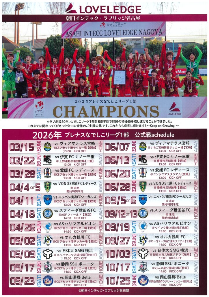 ラブリッジは昨年、なでしこリーグ1部で初優勝を果たし、今年はリーグ戦連覇を目指す年となり、応援する側の期待も自ずと高まってきています。チームは選手の入れ替わりが多少あり、今は開幕に向け、新体制の精度アップに余念がないことと思います。